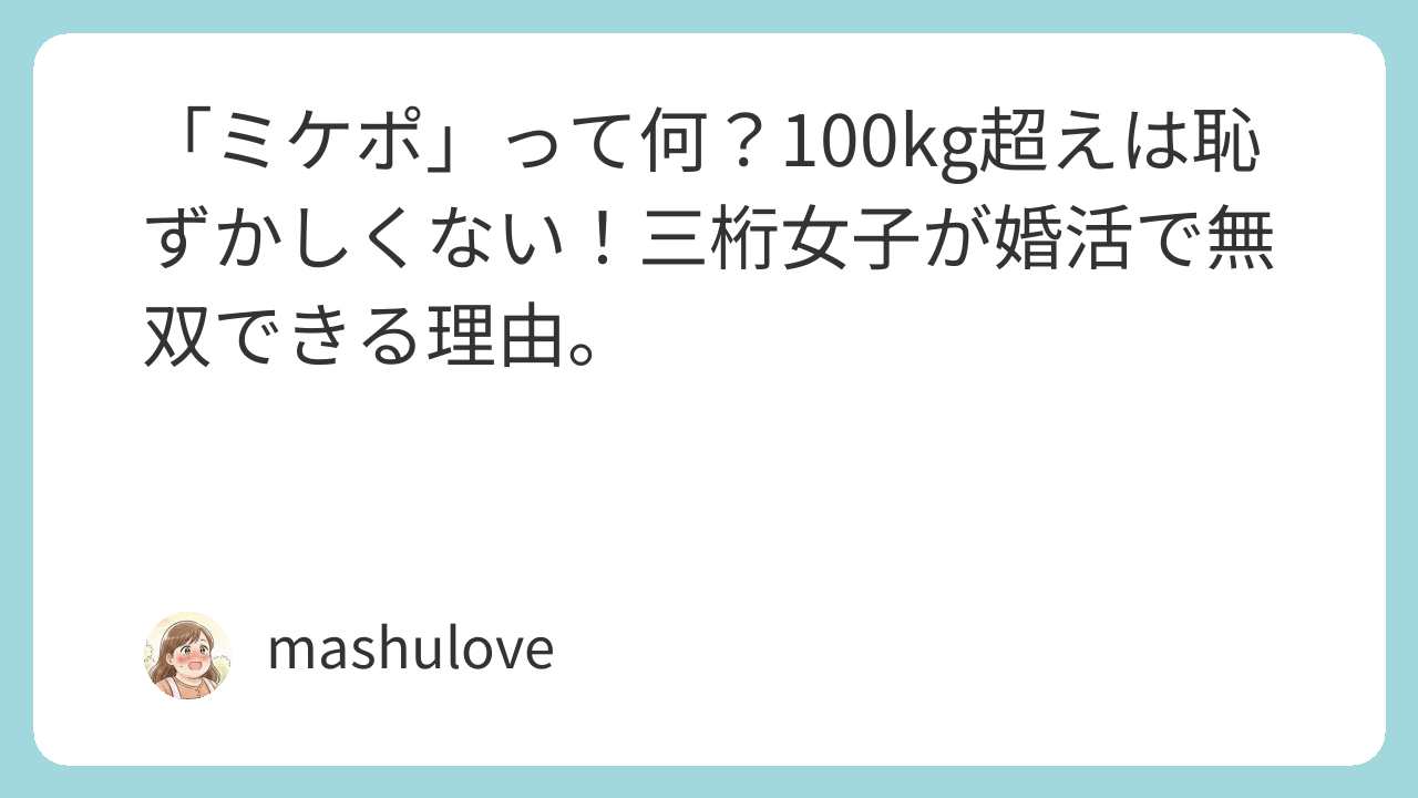 「ミケポ」とは、三桁(ミケタ)の体重を持つ、豊かで魅力的な「ぽっちゃり女子」への愛称なんです!